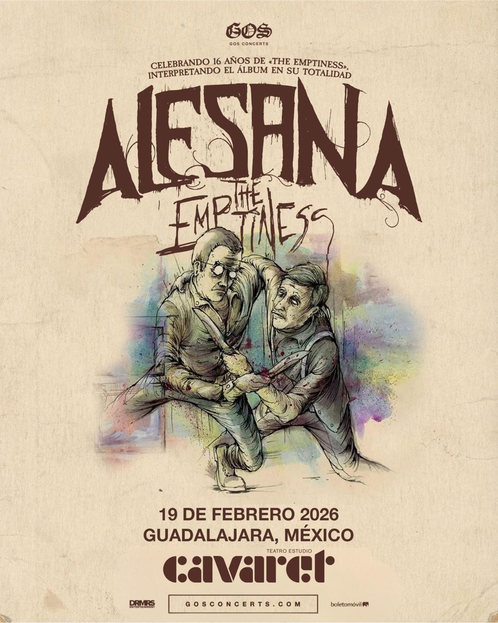 GOS Concerts presenta: Alesana regresan a Latinoamérica con una de las giras más esperadas por sus fans: la celebración de “The Emptiness”, uno de sus álbumes más emblemáticos, sin dejar fuera sus éxitos más grandes. Con su fusión inconfundible de post-hardcore teatral, narrativas retorcidas y explosiones emocionales, la banda traerá a la región un show intenso y profundamente catártico.