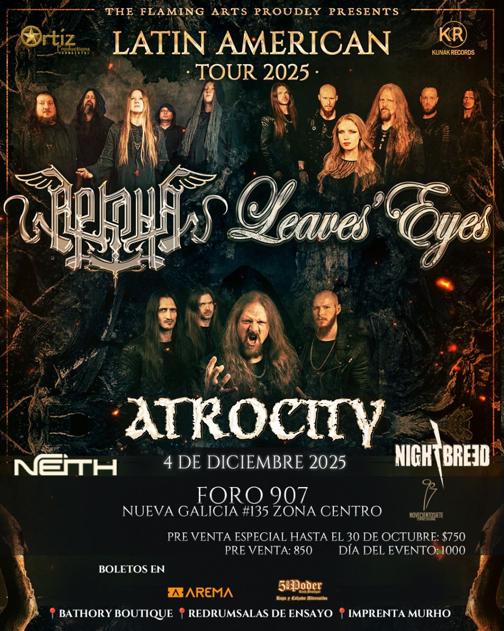 La escena musical en México se prepara para un evento de gran magnitud, donde tres icónicas agrupaciones representarán la unión perfecta en un triángulo del metal, con motivo de su gira por Latinoamericana, Arkona, Leaves’ Eyes y Atrocity llegarán a nuestro país, visitando cuatro ciudades.