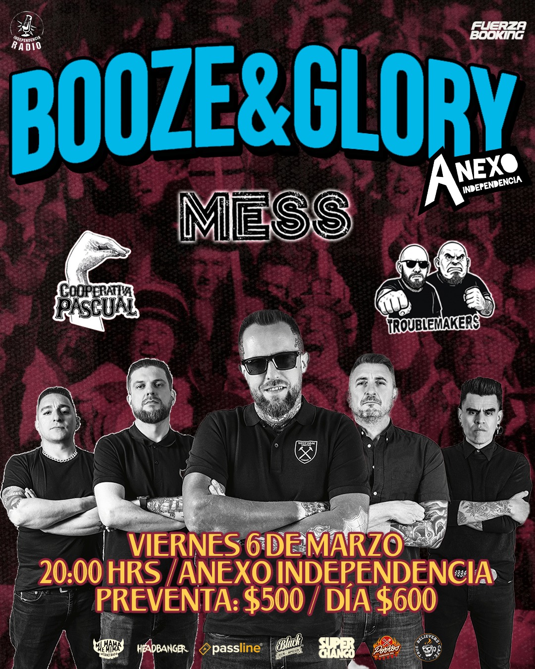 Booze & Glory llega por primera vez a Guadalajara para demostrarnos por qué son una de las bandas más importantes del Oi! & Street Punk. Este 6 de marzo el Anexo Independencia será el escenario de una reunión masiva para todos los amantes del punk y los himnos de estadio.