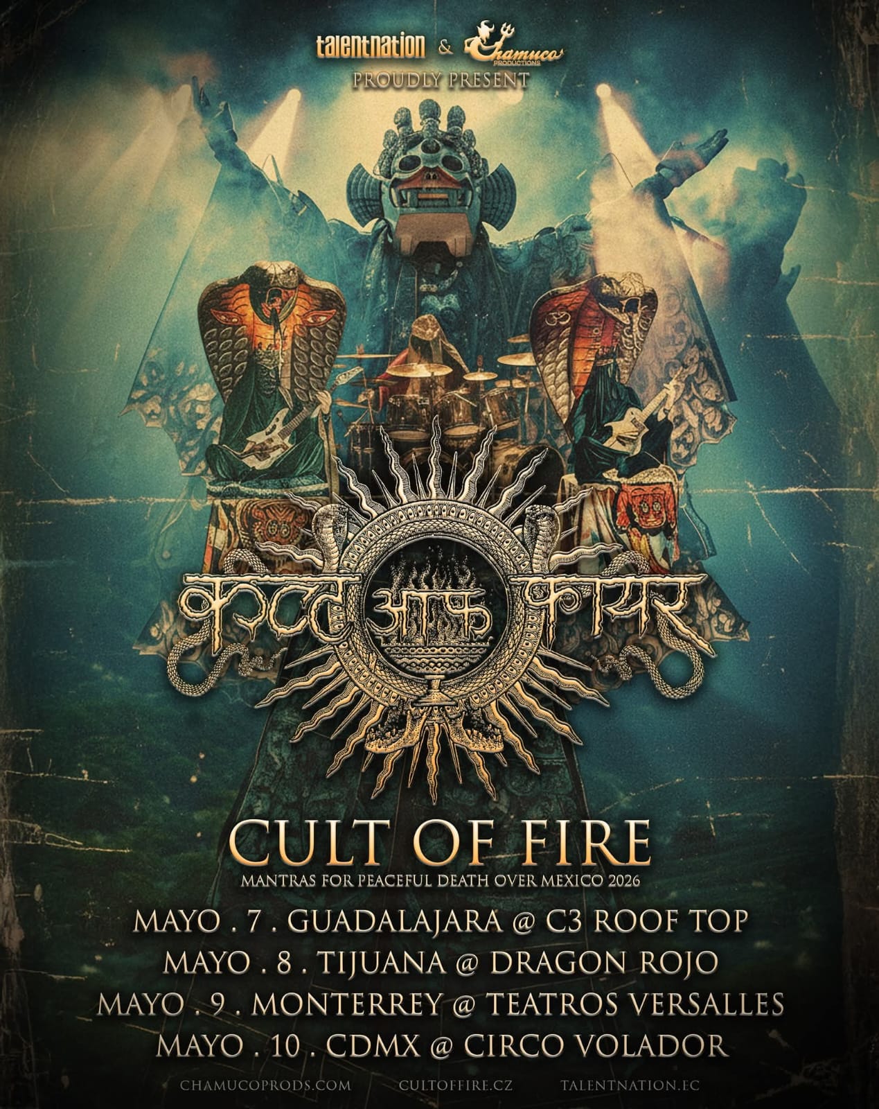 La visita de Cult of Fire no es un concierto convencional; es la presentación de su concepto «Mantras for Peaceful Death». México ha demostrado ser uno de los bastiones más fieles para el metal de vanguardia, y la banda busca conectar con el público latinoamericano a través de su propuesta visual, que incluye altares, inciensos y vestimentas rituales que transforman el escenario en un templo.