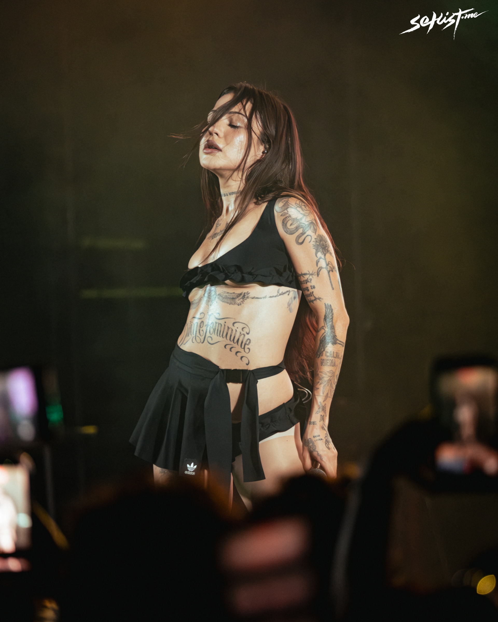 Acompañada por cuatro bailarines, la artista dio un show lleno de energía, sensualidad y precisión. Hubo floorwork, miradas cómplices y coreografías que mezclaban la técnica con ese toque raw que la hace única. Se notaba que estaba disfrutando cada segundo, y esa conexión real con el público fue lo que convirtió el show en una fiesta compartida.