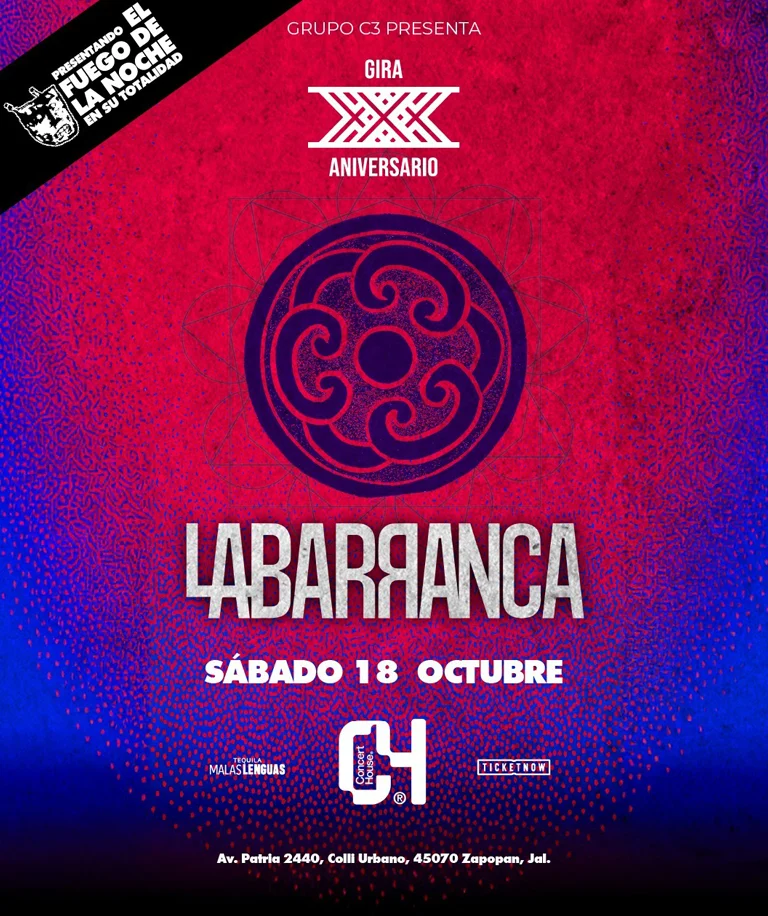 Como parte fundamental de las celebraciones por su XXX Aniversario, La Barranca llega al C4 Concert House para presentar un concierto sumamente especial: por primera vez la banda tocará en su totalidad su disco fundacional, «El Fuego de la Noche”.