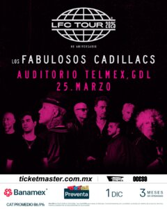 Como parte de la celebración por sus 40 años de trayectoria, la histórica banda argentina Los Fabulosos Cadillacs se presentará en Guadalajara el próximo 25 de Marzo en el Auditorio Telmex.