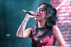 Hubo dos invitados en esta velada; uno de ellos fue Almanegra con quien interpretó “En la Oscuridad” y Macario con quien cantó un cover de Chalino Sánchez, “Alma Enamorada”. Posterior a esto, pudimos verla bailar al estilo bachata en “Dame un Poquito” y también en “No Estamos Listos”, canciones que toca con Santu.