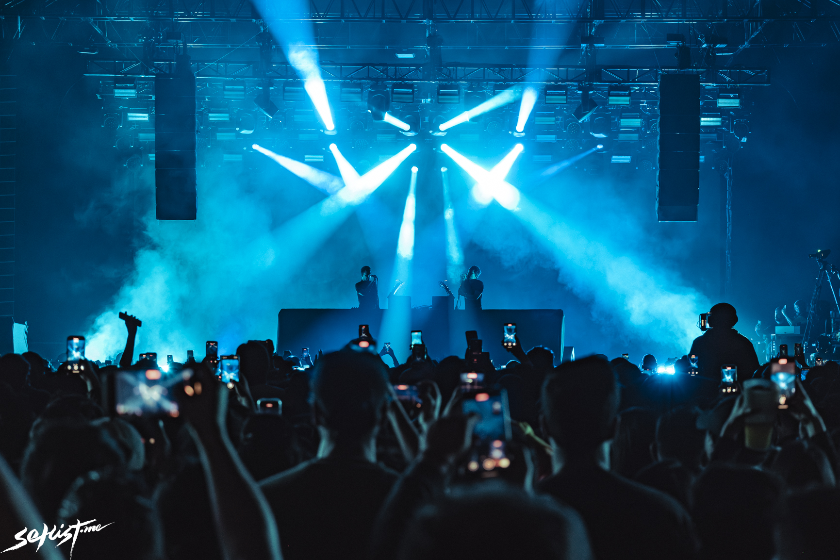 A las 10:00 pm, sin un segundo de retraso, inició el acto principal. El dúo francés The Blaze, conocidos por su mezcla de french house sentimental y su impecable dirección cinematográfica, abrió su set con “Haze”. Esa línea inicial —Come with me— se sintió como un portal: una invitación a dejar fuera el mundo exterior y entrar en el universo sensorial que solo ellos pueden construir.