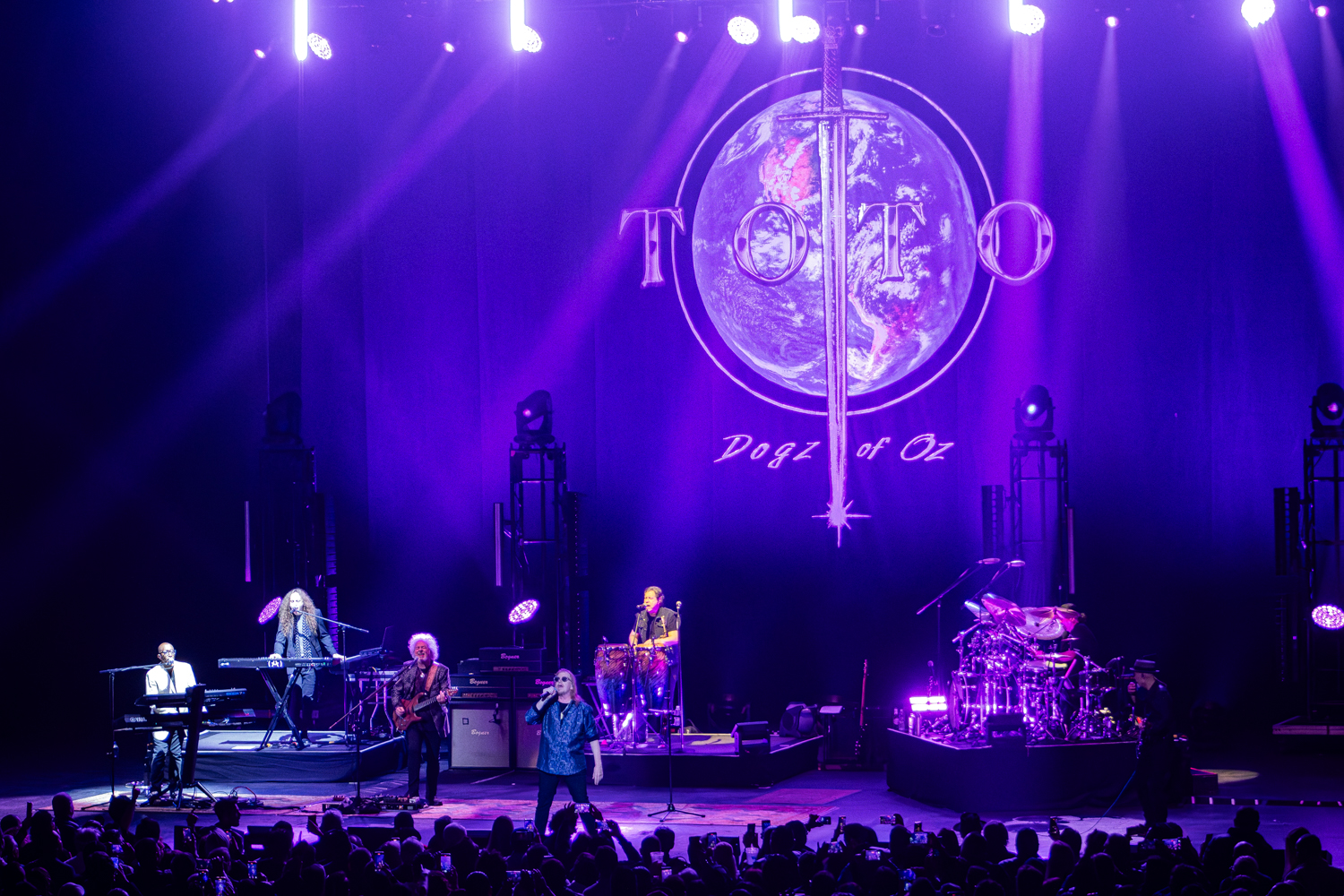 Steve se tomó el tiempo de presentar a toda la banda, destacando la mezcla generacional que hoy conforma a Toto. Por un lado, los músicos más jóvenes —como Dennis Atlas, en teclados y segunda voz, y Shannon Forrest en la batería— aportando frescura y precisión. Por el otro, pilares históricos del proyecto: Greg Phillinganes (teclados y voz), John Pierce (bajo) y Warren Ham (saxofón, flauta, percusión y voz), sosteniendo el alma del sonido Toto.